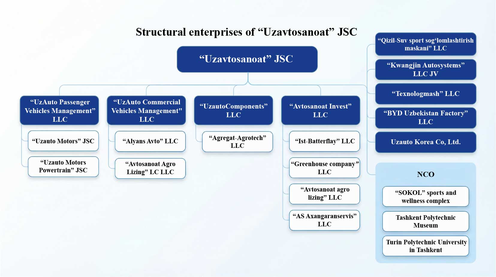 UzAuto Motors Powertrain produces second generation of B-DOHC (Double Overhead Camshaft) gasoline and bi-fuel (gasoline / gas) engines, designed for optimal power and fuel consumption for the Uzbek market, as well as for export, including Russia, USA and the CIS countries. There are two types of engines: with a volume of 1.2 liters and 1.5 liters for models such as Chevrolet Spark, Cobalt, Gentra, Nexia3