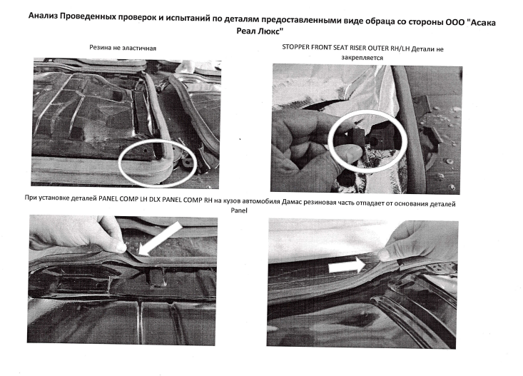 Ammo, o‘rganishlar natijasida “Asaka real lyuks” korxonasining yuqoridagi detalni ishlab chiqarish va yetkazib berishning to‘liq sikli to‘g‘risidagi bayonotiga qaramay, sanab o‘tilgan zarur jihozlardan faqat bo‘yoq liniyasi mavjudligi, unda yetti turdagi texnologik jarayonlaridan faqatgina bir turdagisi tayyor qismlarni bo'yoqlash jarayoni yo’lga qo’yilganligi aniqlandi.