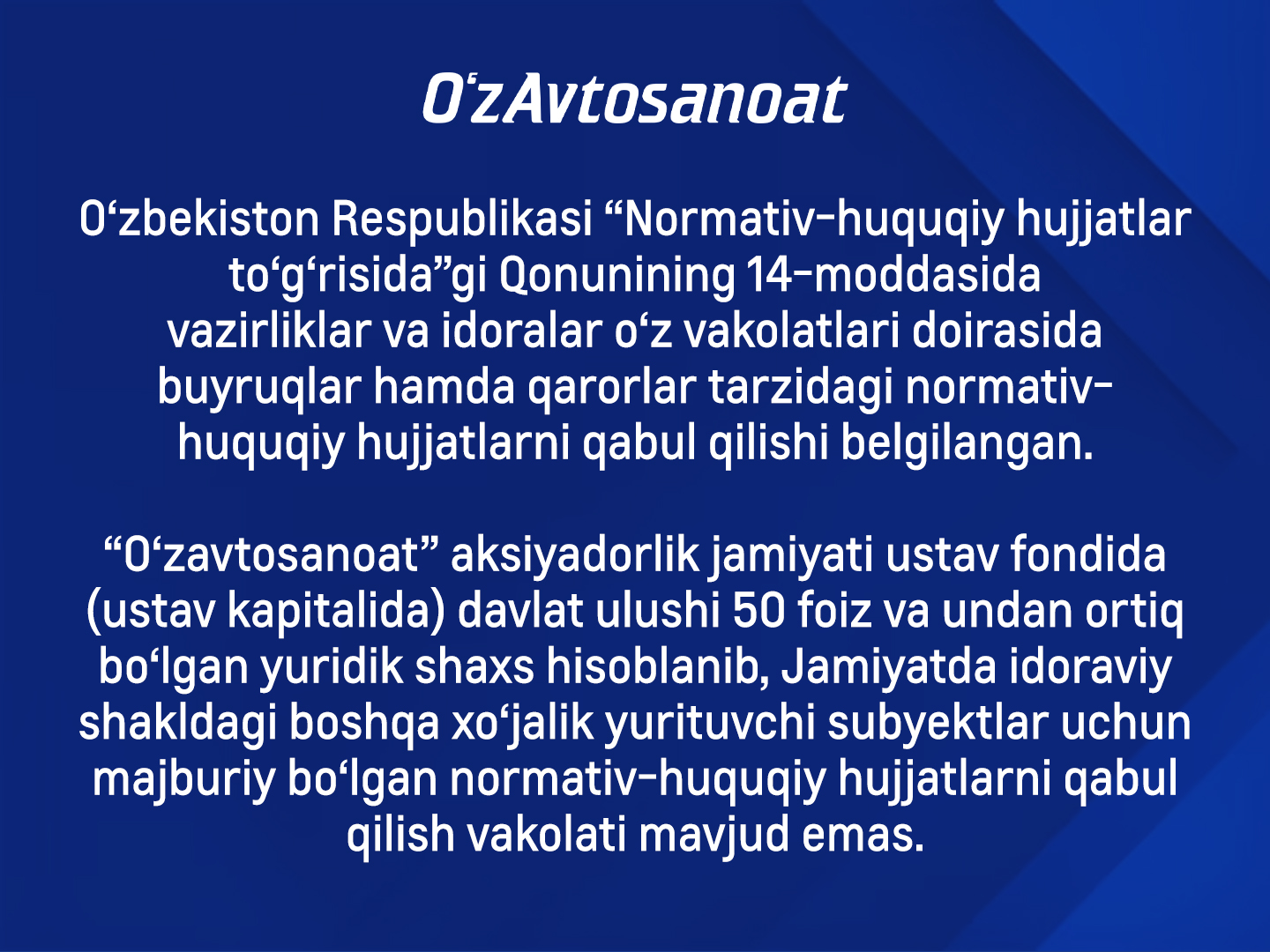 | 2.4 | O‘z kuchini yo‘qotgan normativ-huquqiy hujjatlar to‘g‘risidagi ma’lumotlarning e’lon qilinishi | Batafsil | |||