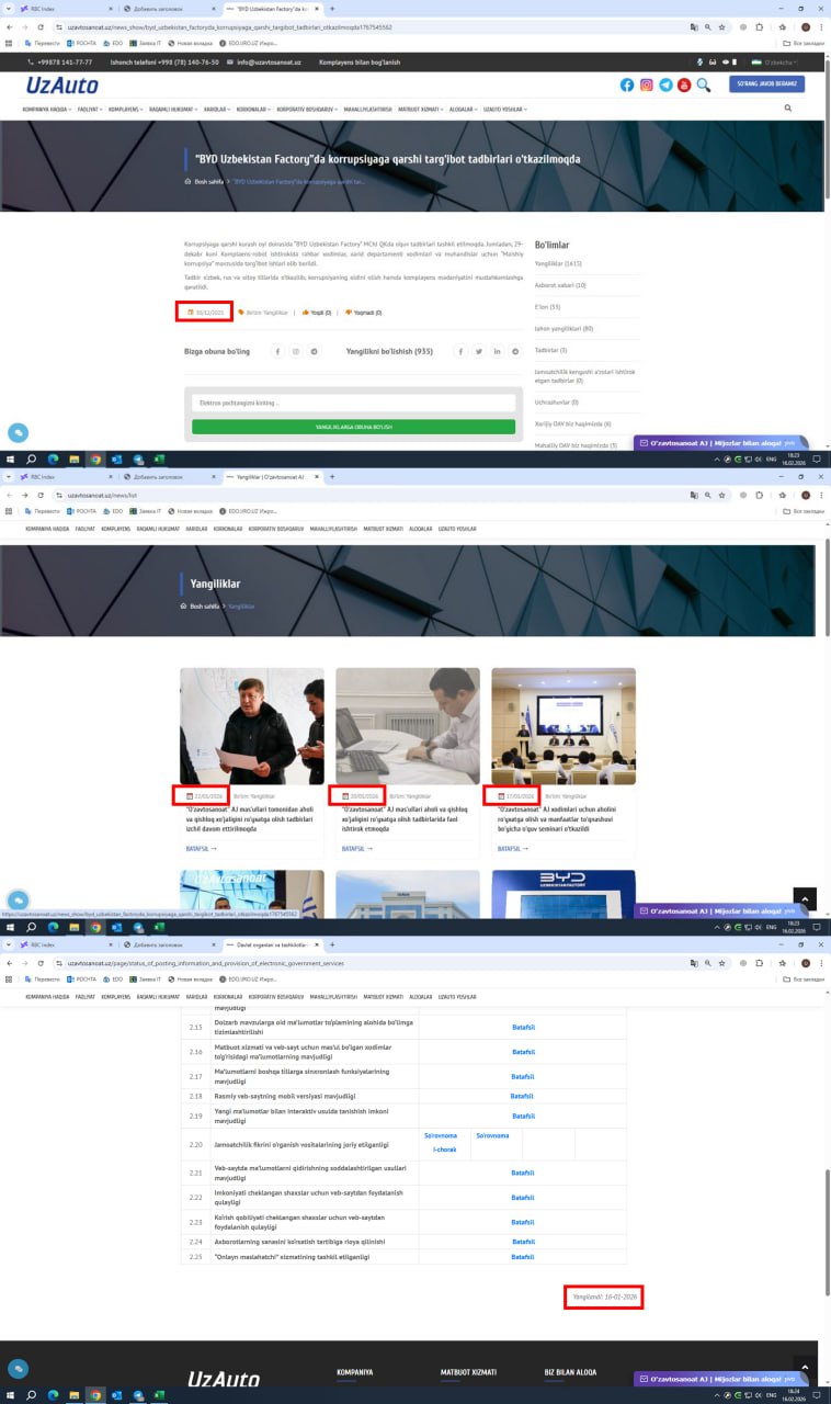| 2.24 | Axborotlarning sanasini ko‘rsatish tartibiga rioya qilinishi | Batafsil | |||