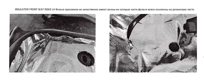 Испытания показали, что деталь в тестовых комплектующих, деформирована, тверда, не полностью покрыта клеем, который отделяется в процессе установки на сиденье. Кроме того, некоторые детали установлены неправильно, а часть из фольги была приклеена поверх уплотнения. Результаты были признаны неудовлетворительными, а детали непригодными для использования в производстве автомобильный сидений, о чем «Асака Реал Люкс» был официально извещен.
