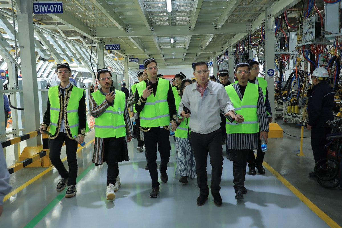 — Я студент инженерного направления, и мне очень приятно, что моя первая профессиональная экскурсия состоялась именно на этот завод. Технологии, используемые на предприятии по производству электромобилей и гибридных автомобилей, произвели на меня огромное впечатление. Увидев здесь производственные процессы, моя мотивация к учебе значительно возросла, и теперь я поставил перед собой цель — стать высококвалифицированным специалистом и работать на этом предприятии в будущем, — отметил студент университета «Новый Узбекистан» Бехруз Дустмуродов.