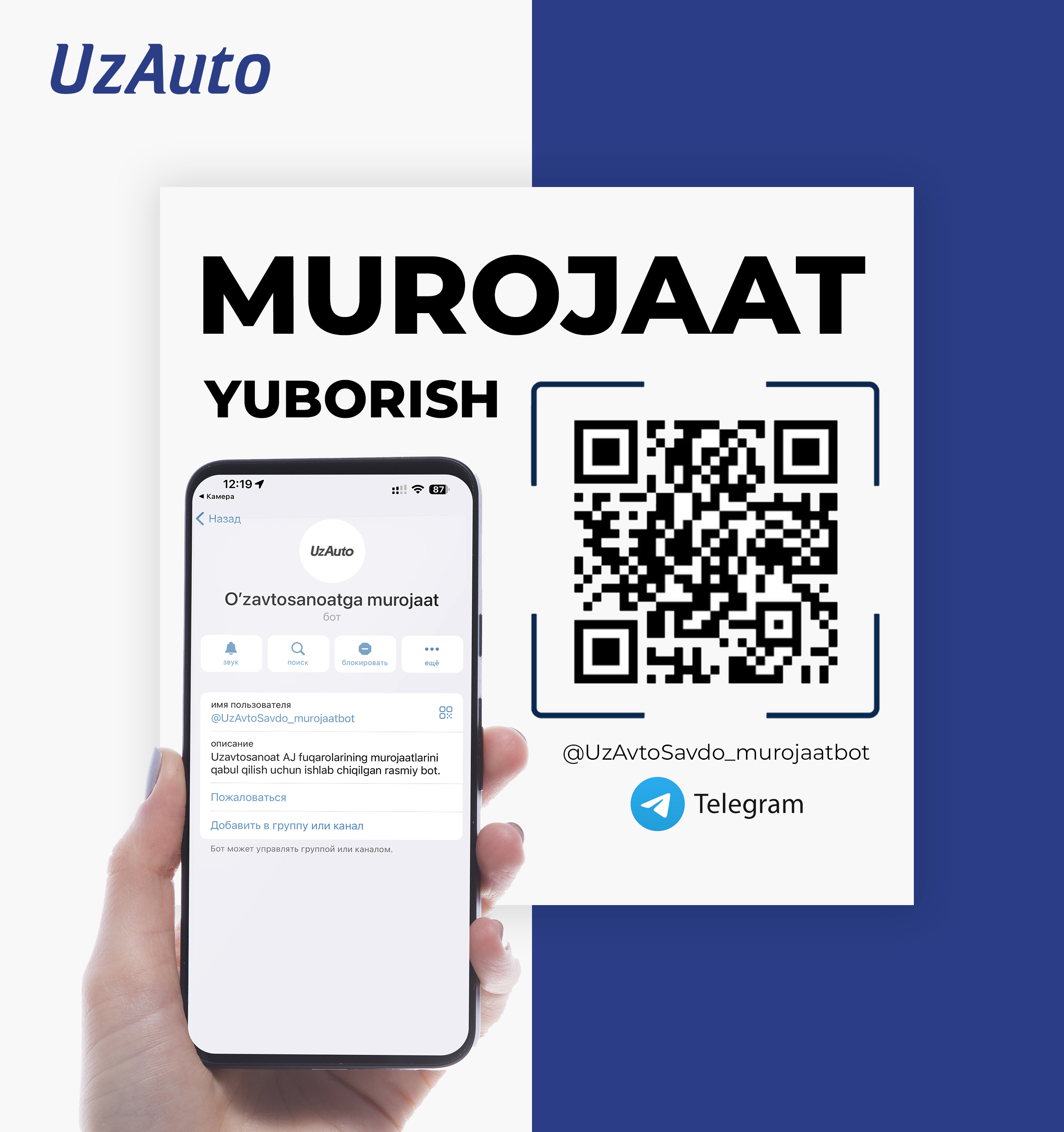 Hurmatli "O‘zavtosanoat" AJ rasmiuy veb-sayti foydalanuvchilari!Endilikda "O‘zavtosanoat" AJga VIRTUAL QABULXONA orqali murojaat qilishingiz mumkin.
