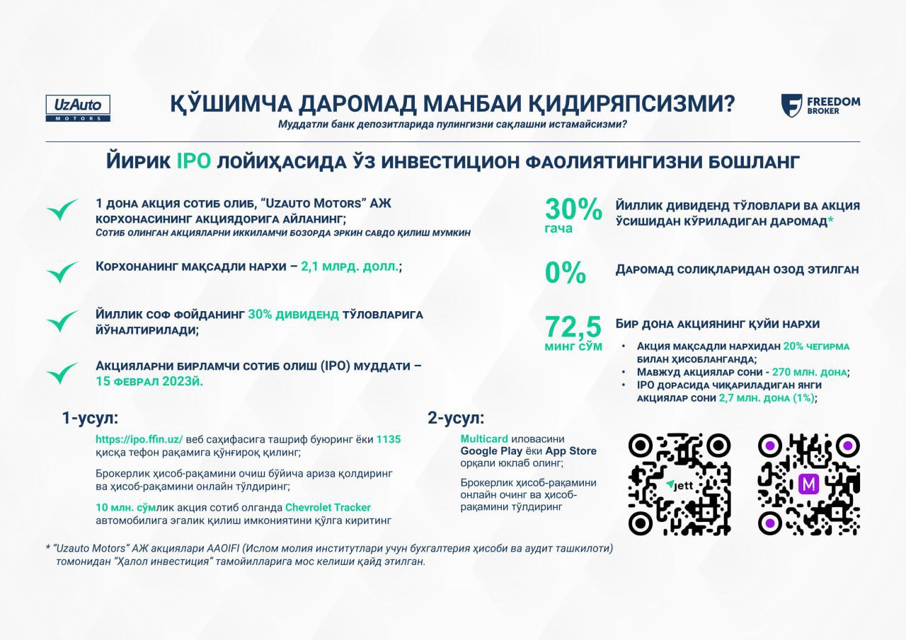 Qo'shimcha daromad manbai qidiryapsizmi? U holda MDHdagi yirik avtomobil ishlab chiqaruvchisining aksiyalarini birinchilardan bo'lib xarid qiling! O'z investitsion faoliyatingizni boshlang!
